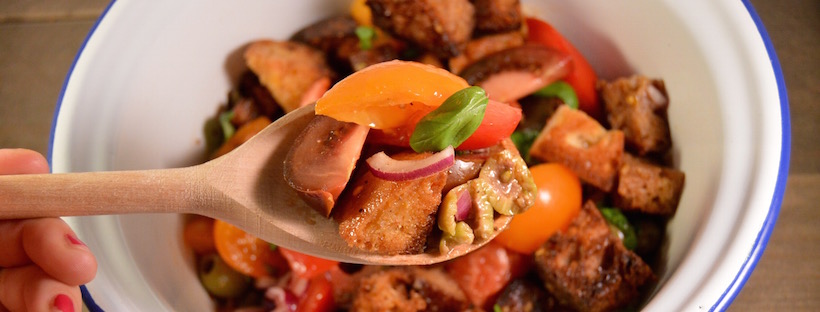 Van armeluisvoedsel tot Italiaanse klassieker: panzanella. Als je ooit in Toscane of Umbrië bent geweest heb je het vast een keer gegeten of op de kaart zien staan. Panzanella is een Italiaanse broodsalade die vroeger vaak door de armere bevolking werd gegeten. Deze salade is dan ook ontstaan vanuit restjes, met als hoofdingrediënt: oud brood. Het brood wordt geroosterd en daarna goed gemengd met het vocht van de salade (tomaat, olie, azijn). Nu denk je misschien: uuh een zompige broodsalade dus? Ja, dat klopt. Maar doordat je het brood eerst roostert is hij knapperig en zompig tegelijk. Ok, ik hou op met omschrijven want je moet het gewoon een keer zelf proberen. Maak het en laat je verrassen door dit, van origine, armeluisgerecht. Lees verder